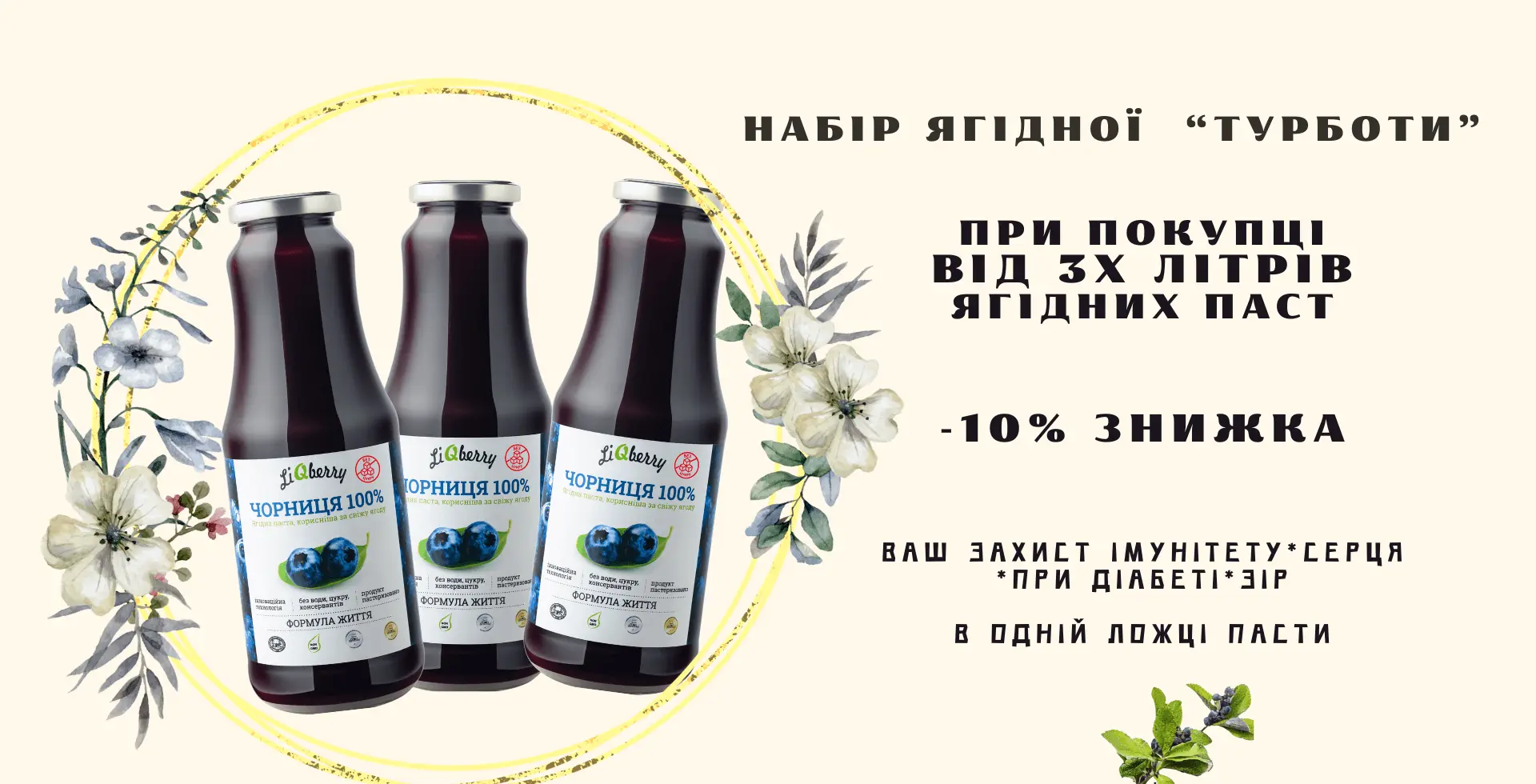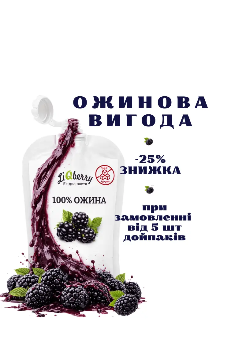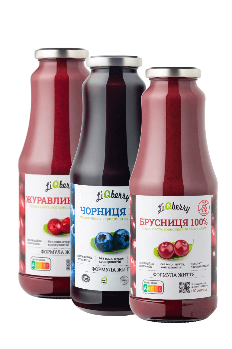 Чорнична паста LiQberry®– натуральний продукт з дикорослих ягід. Паста вироблена за унікальною HTD-технологією, що дозволяє витягти найцінніший вміст кісточки (вітаміни, амінокислоти, антиоксиданти, омега -3-6-9, ХГК тощо). Докладніше
