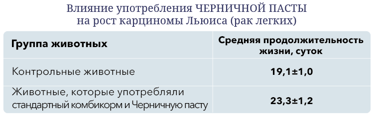 «Данные проведенной работы свидетельствуют о перспективности дальнейшего исследования ЧЕРНИЧНОЙ ПАСТЫ с целью ее использования для профилактики рака и использования в лечебном питании онкологических больных».