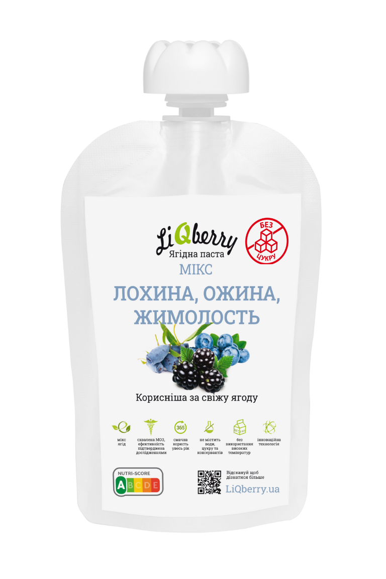 Паста Ягідна мікс: чорниця, лохина, аронія LiQberry® Дой-пак 100г